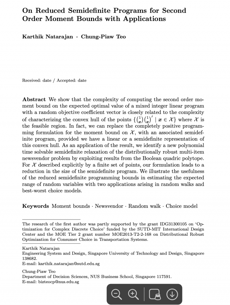 Karthik Natarajan, Chung-Piaw Teo