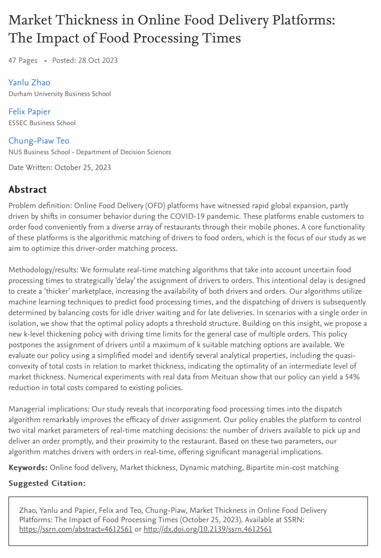 Yanlu Zhao, Felix Papier, Chung-Piaw Teo