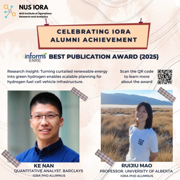 IORA PHD alumni Nan Ke and Ruijiu Mao have received the INFORMS ENRE Best Publication Award (2025), recognizing impactful and original research in energy and natural resources. Their award-winning
